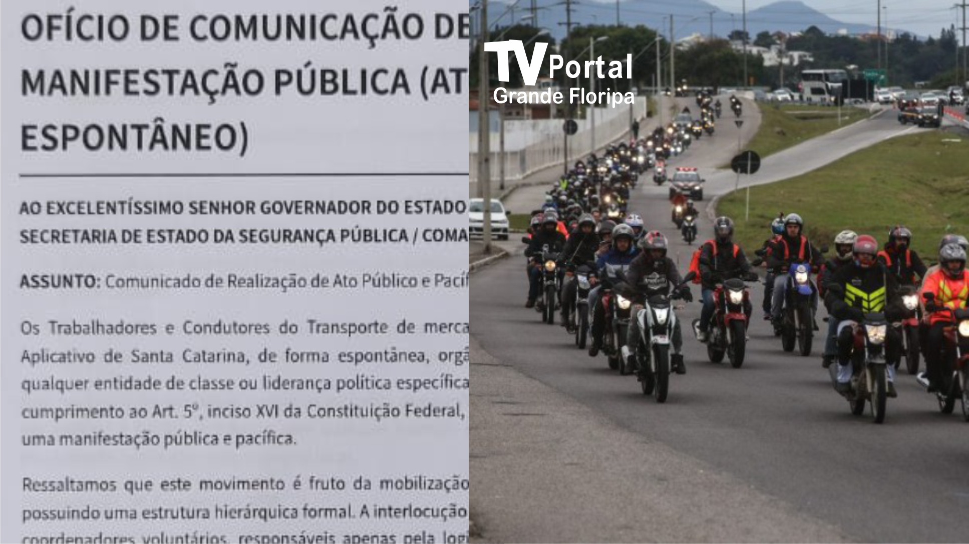 Entregadores e motociclistas fazem mobilização na Grande Florianópolis