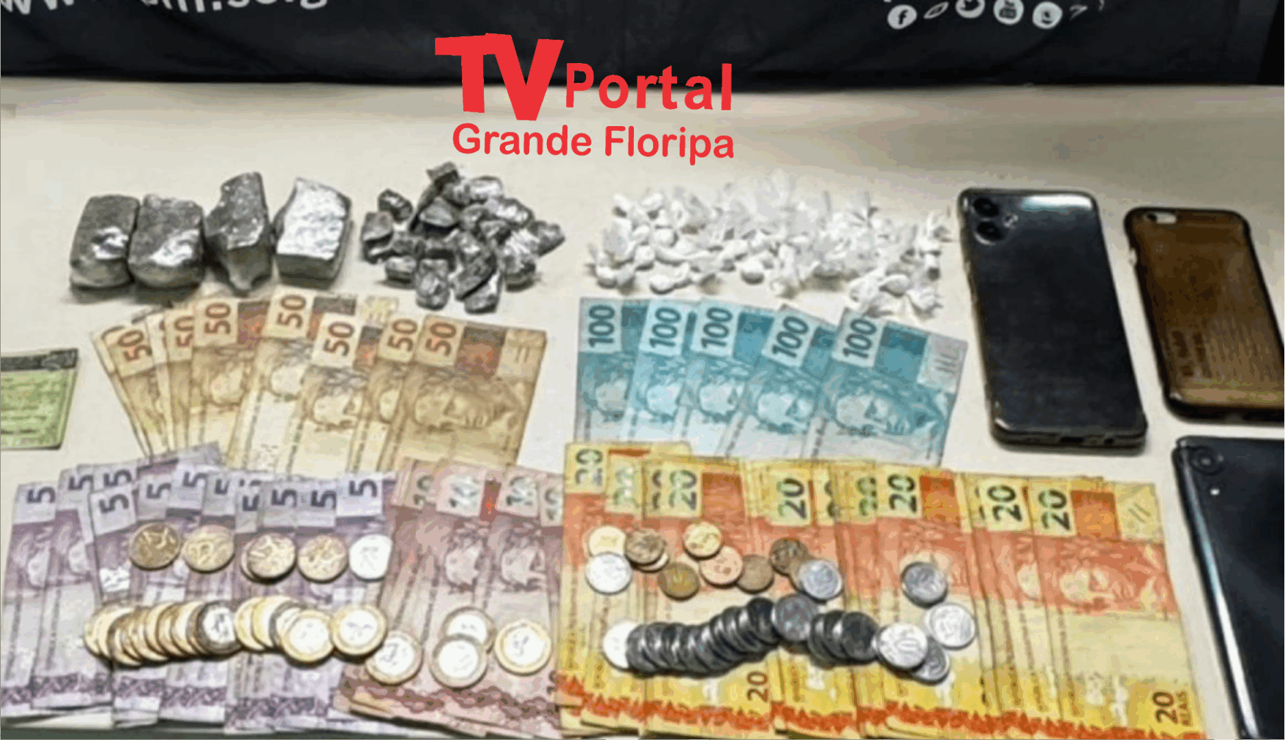 A última prisão ocorreu por volta das 01h10, quando os policiais realizavam rondas na Rua Dália, bairro Serraria/SJ, momento se depararam com um homem em atitude suspeita que, ao avistar a viatura, dispensou uma sacola. Os PMs realizaram abordagem e em busca pessoal foi encontrado 7.895 gramas de Cocaína, 20.445 gramas de Crack, 17.880 gramas de Haxixe, 8.062 comprimidos de Ecstasy e R$46,00 reais em espécie, e que ao verificar a sacola que o mesmo havia arremessado foi encontrado 31.454 gramas de Maconha. O abordado foi detido e encaminhado para a Central de Policia de São José.
